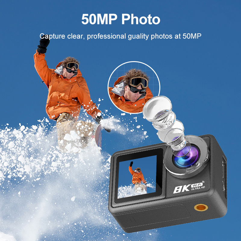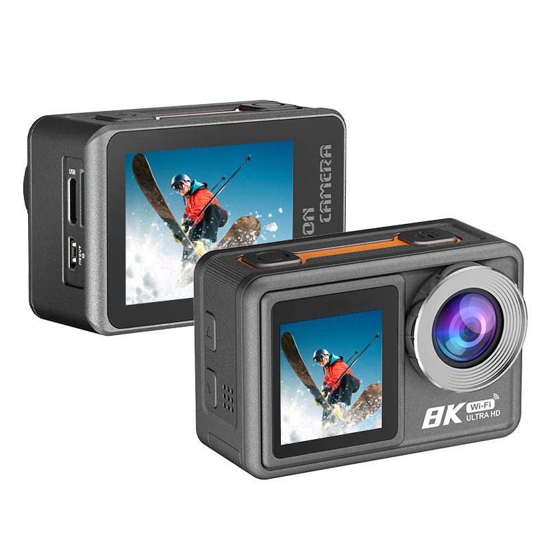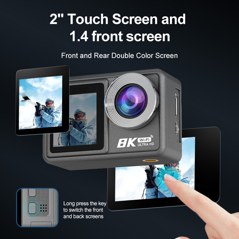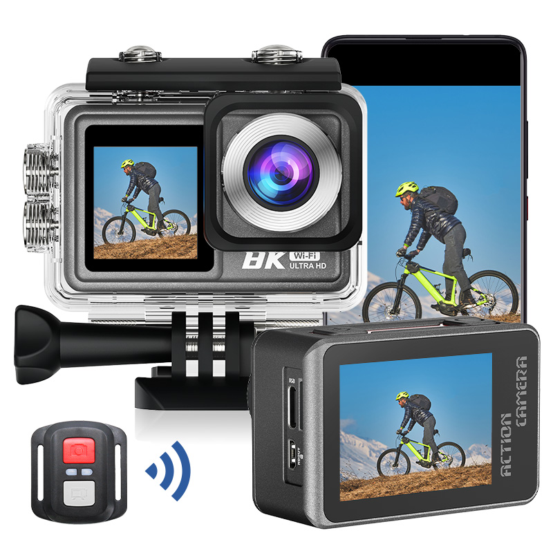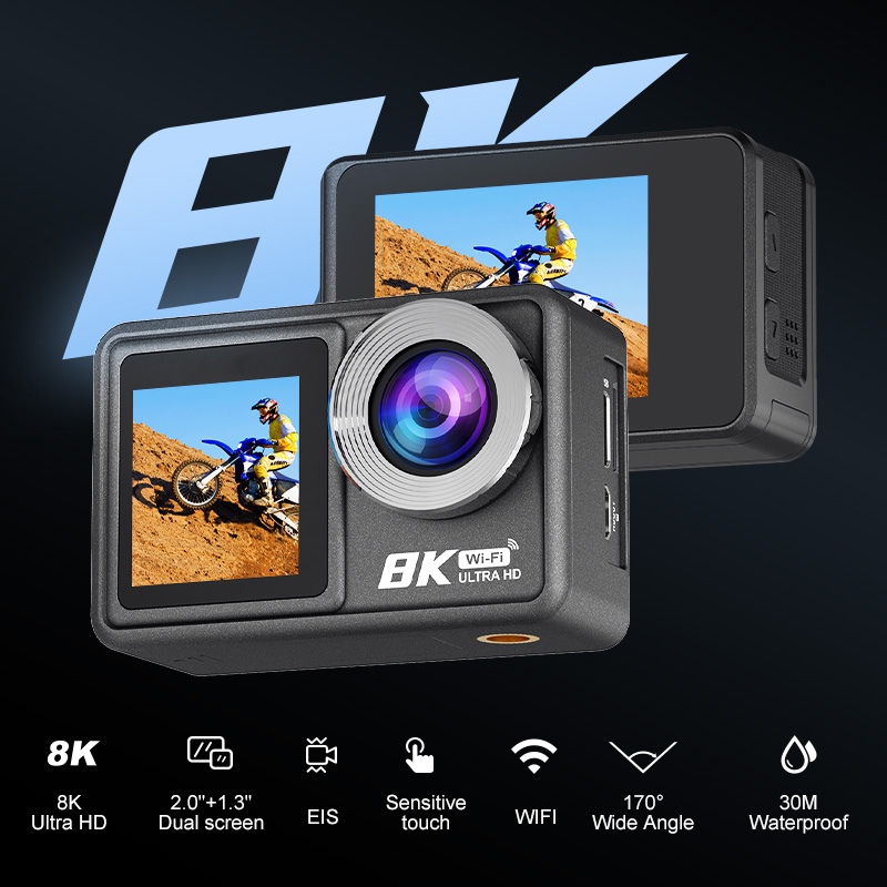 Action Camera 8K ULTRA HD con Telecomando, WIFI, EIS, dual screen(2.0'', 1,3''), touch, waterproof 30M, wide angle (170°).