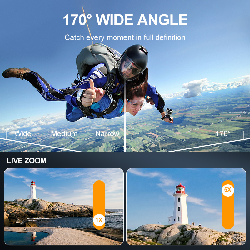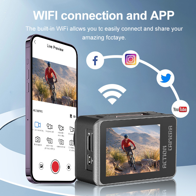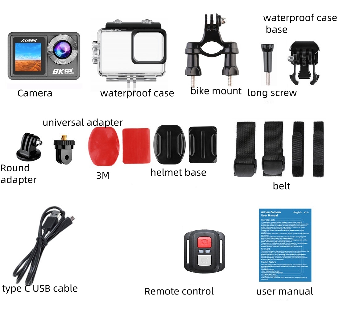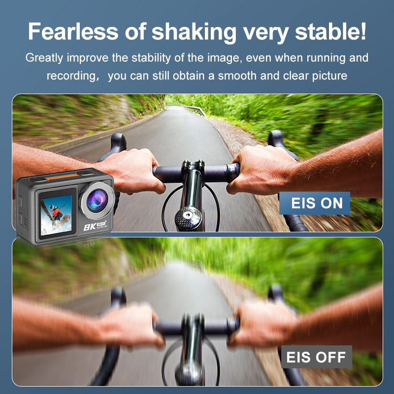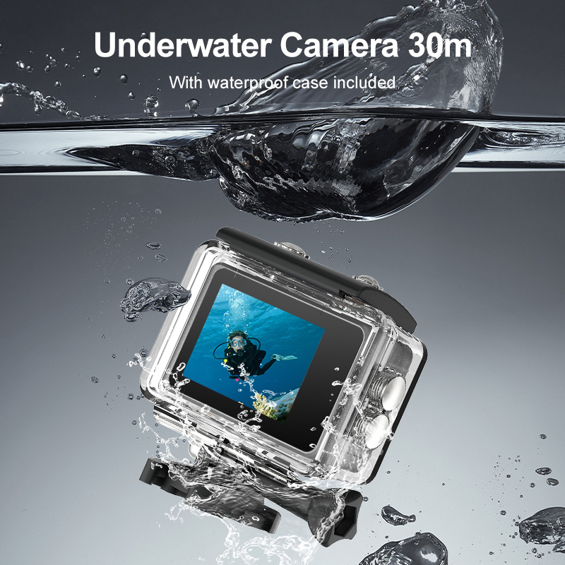 Action Camera 8K ULTRA HD con Telecomando, WIFI, EIS, dual screen(2.0'', 1,3''), touch, waterproof 30M, wide angle (170°).