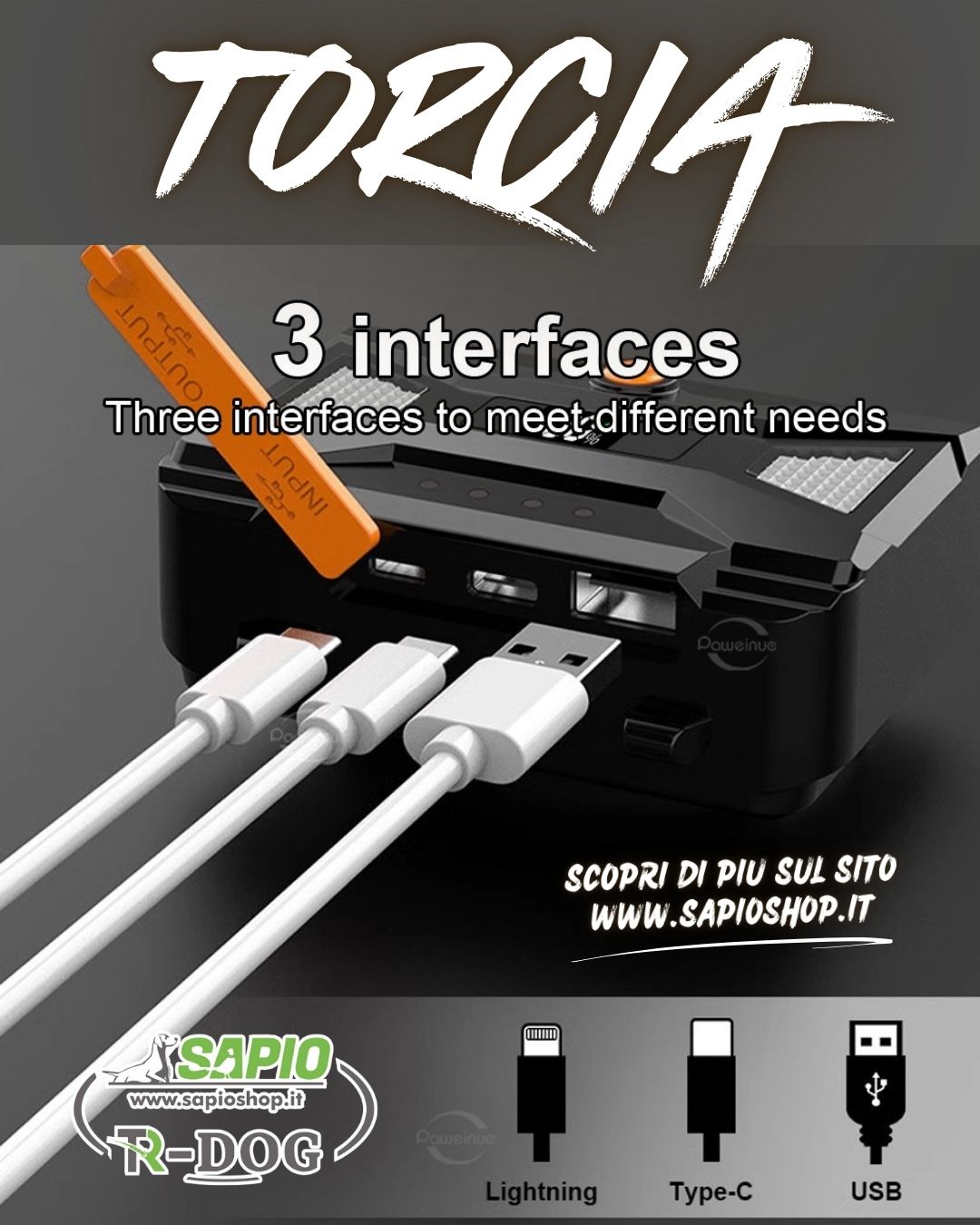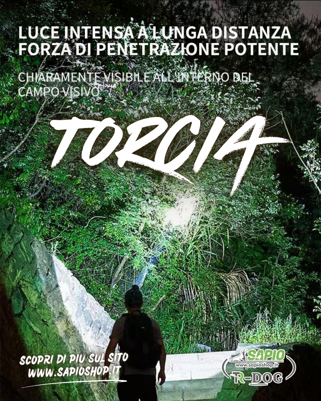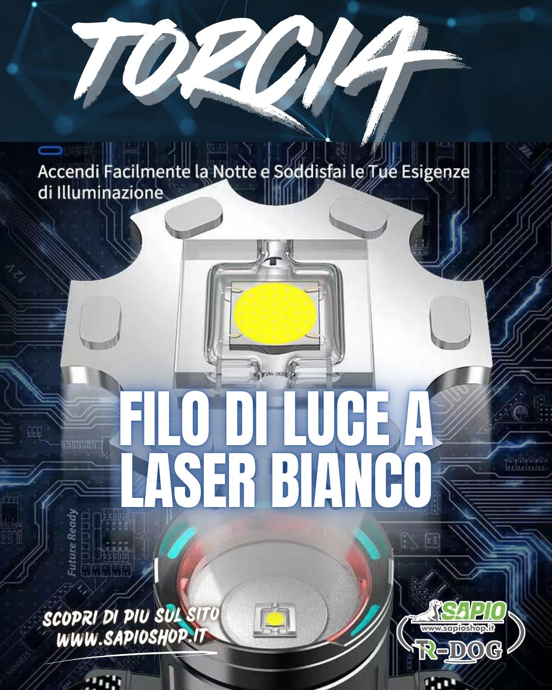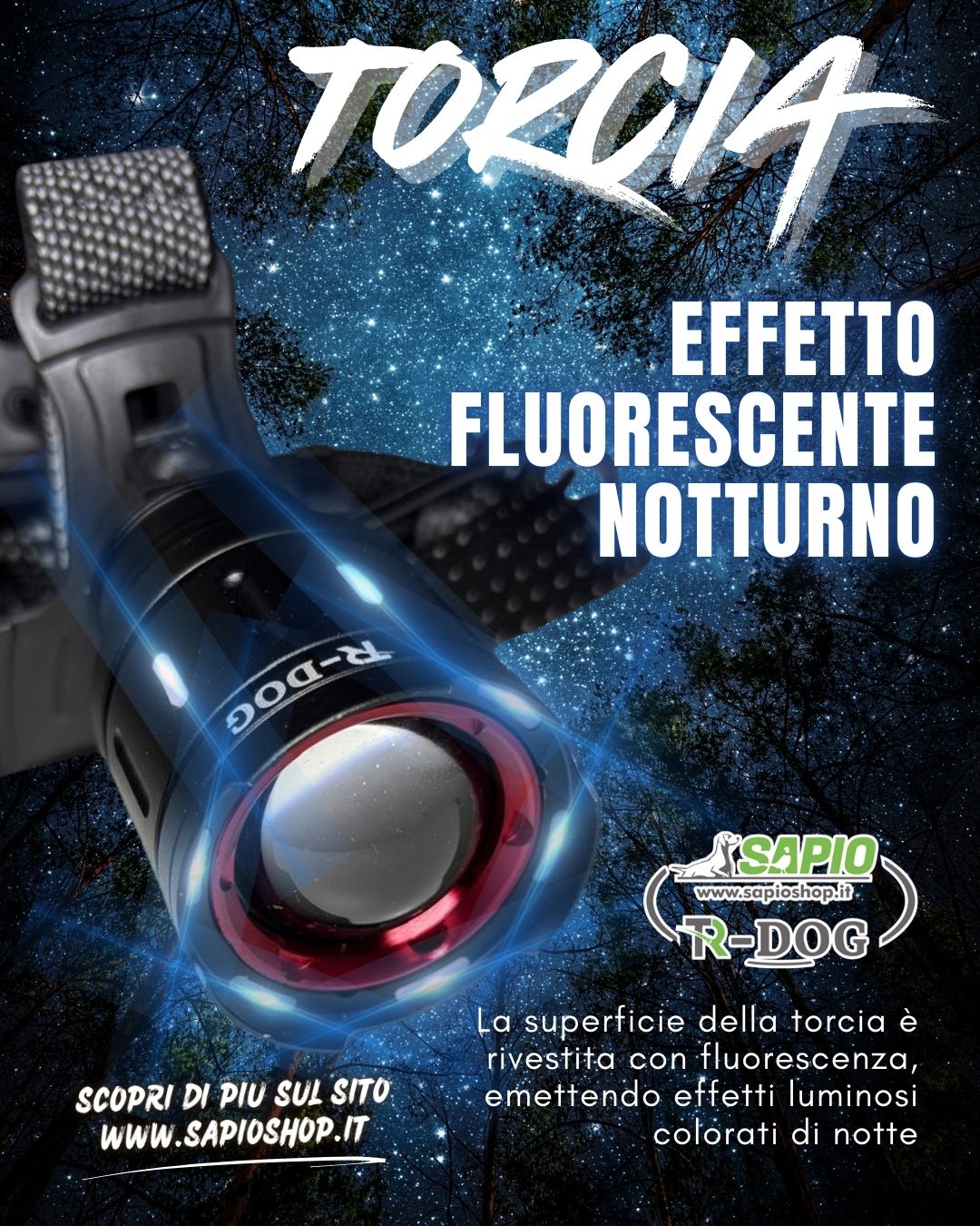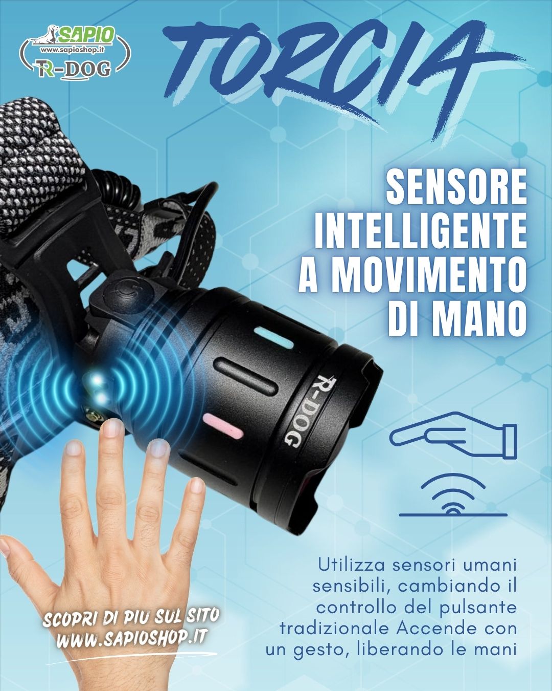 Vantaggi della potente lampada frontale TR-Dog con zoom laser e sensore LED: